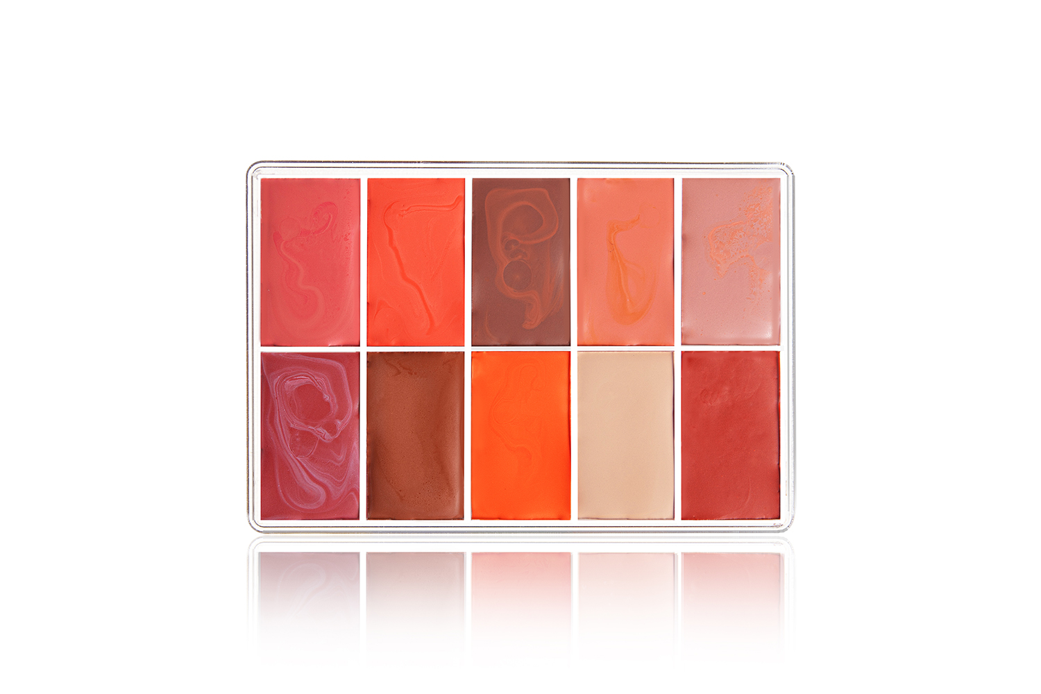 Палетка Blush с текстурой Fard Creme может быть использована как помада и румяна. Палетка состоит из 10 цветов матовой текстуры, возможно применение каждого оттенка как самостоятельного, так и смешивая по собственному усмотрению. Кремовая текстура плотная, легко наносится, дает насыщенный натуральный цвет, как в первоначальном виде. При использовании текстуры в качестве румян текстура будет держаться весь день и не впитываться в кожу. Текстура обладает богатым увлажняющим и защитным свойством, обогащена витамином Е, который предотвращает сухость.