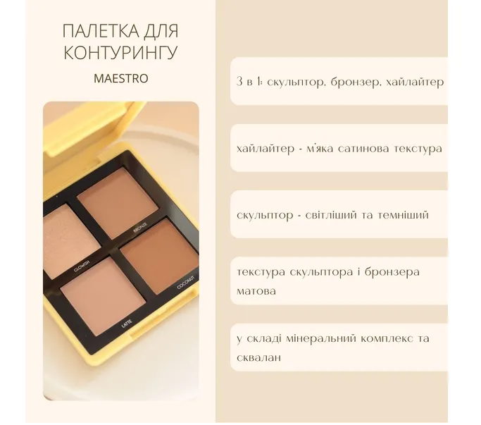 Разнообразие оттенков: палитра включает светлые и темные оттенки для идеального контуринга.