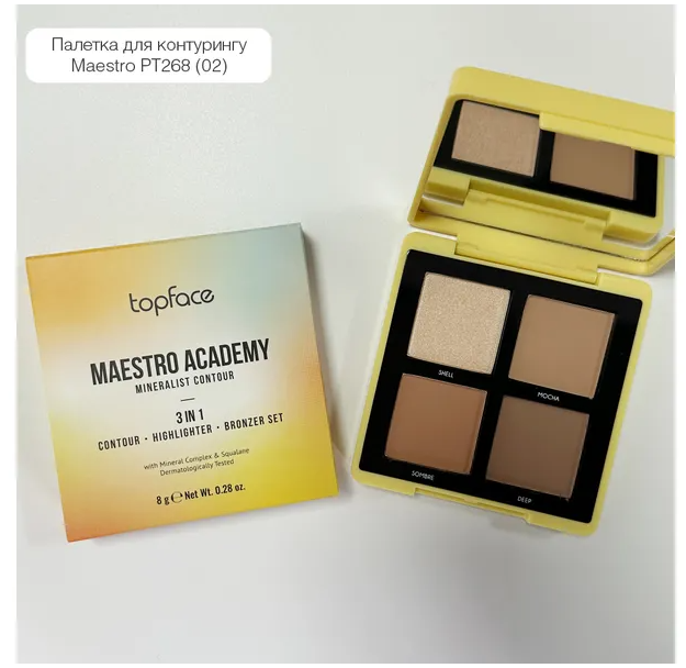 Палитра для контуринга TopFace «Maestro Academy Mineralist Contour» PT268 создана для того, чтобы привлечь внимание и придать вашему лицу идеальные формы с помощью современных штрихов.