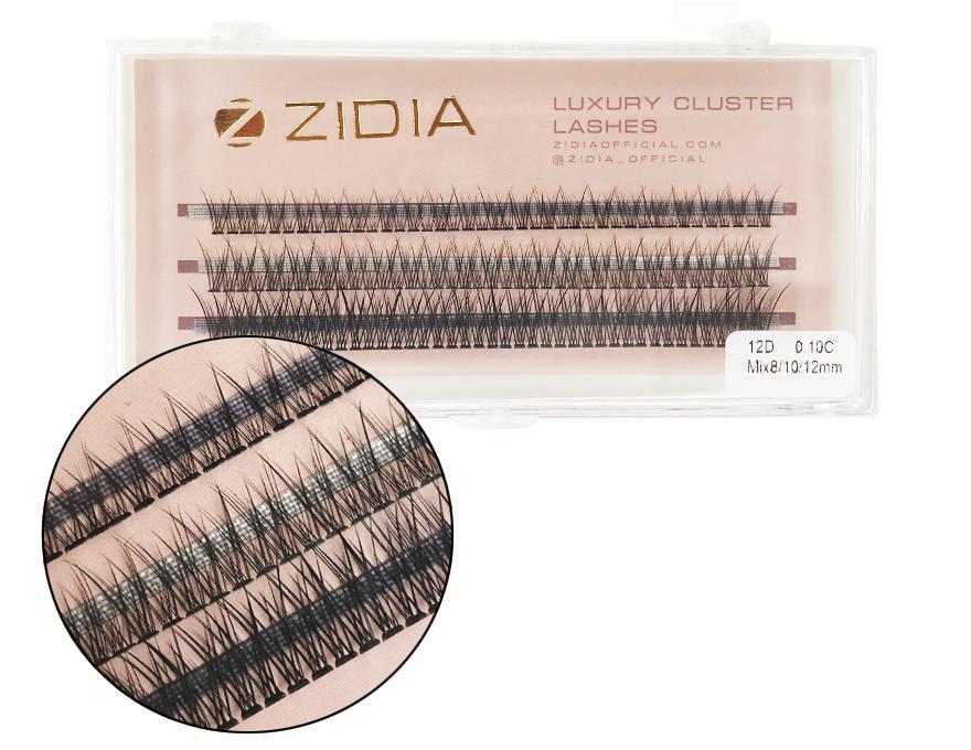 ZIDIA Cluster lashes fish tail Ресницы-пучки рыбий хвост 12D C 0,10 Mix (3 ленты, размер 8, 10, 12 мм)