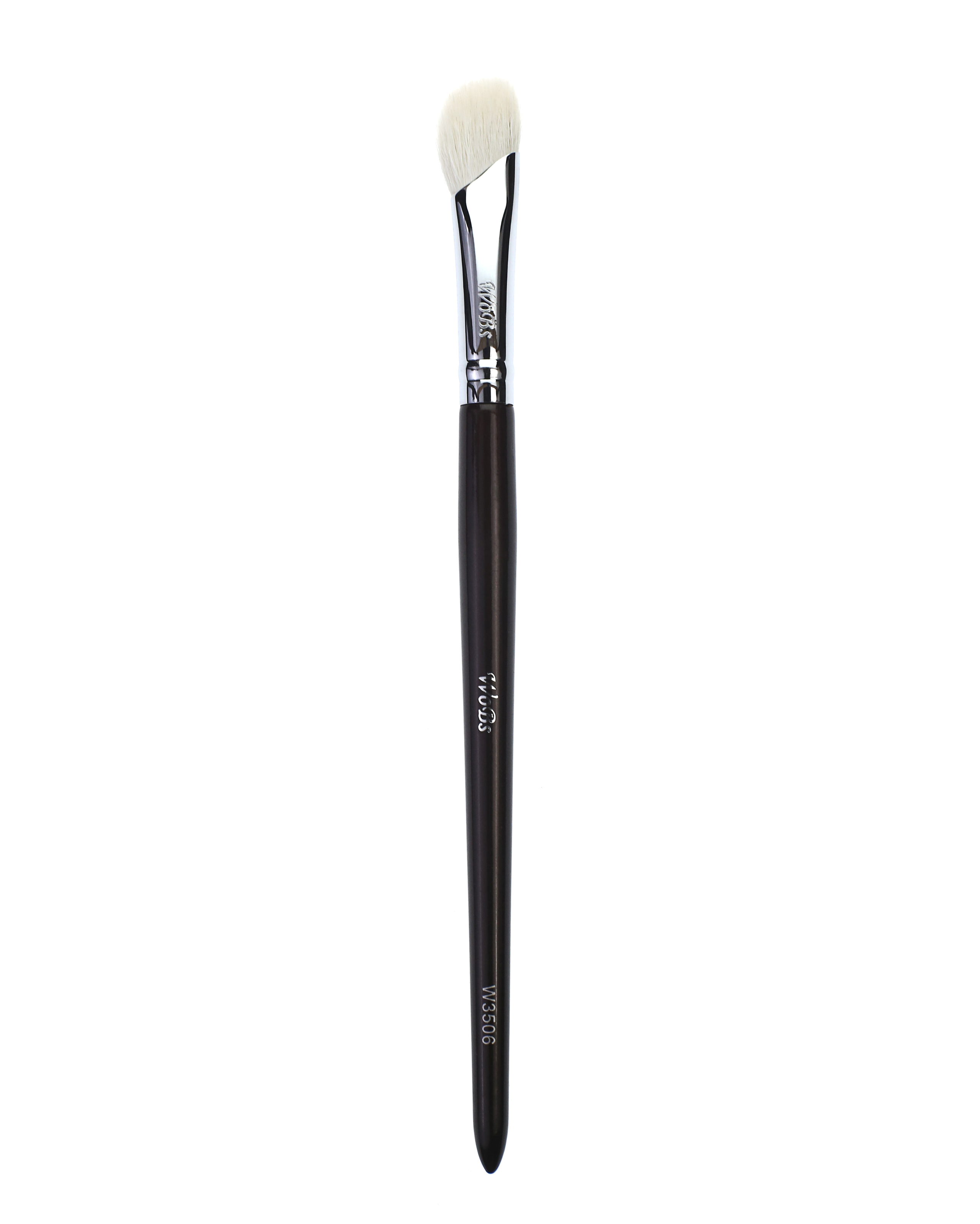 W3506 - кисть для нанесения и растушевки теней. Выполнена из волоса белой козы премиум-класса. Имеет плоскую форму, скошенный край, напоминает половинку кисти веер. Это упрощает работу в зоне глаза и в зоне линии бровей. Ее можно использовать для работы с хайлайтером. Благодаря форме и размеру, удобна в работе на маленьких участках. Приятная и мягкая на ощупь, не раздражает кожу. Комфортная в работе хорошо ложится в руке.